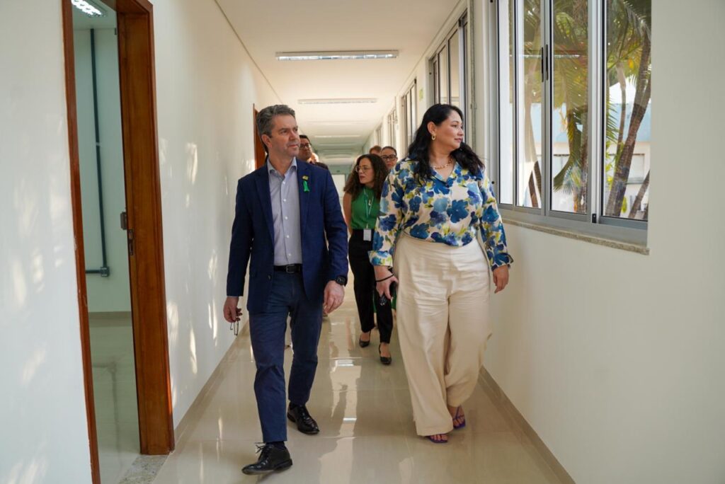 Secretário de Estado da Saúde, Rasível Santos e subsecretária de Inovação, Planejamento, Educação e Infraestrutura da SES-GO, Ana Carolina Abrahão, durante visita às obras na Superintendência de Escola da Saúde de GoiásO panorama da reforma foi apresentado ao titular da pasta pelo superintendente de Infraestrutura da SES, Maurício Ertner de AlmeidaA obra, a maior pela qual a unidade já passou desde que foi inaugurada, irá modernizar toda a estrutura física e tecnológica do localA reforma deve contar com investimentos na ordem de R$ 17 milhões e a previsão é de que seja concluída em janeiro de 2025Segundo a superintendente da Escola de Saúde de Goiás, Rafaela Veronezi, que acompanhou a visita, com a nova estrutura, será possível ampliar também a formação e qualificação profissional realizada no localA unidade certifica, em média, dois mil profissionais de saúde anualmente. Com a revitalização, a expectativa é alcançar 12 mil profissionais capacitados em todo o estado nos próximos três anos