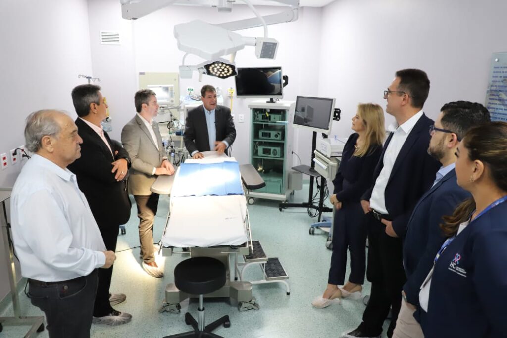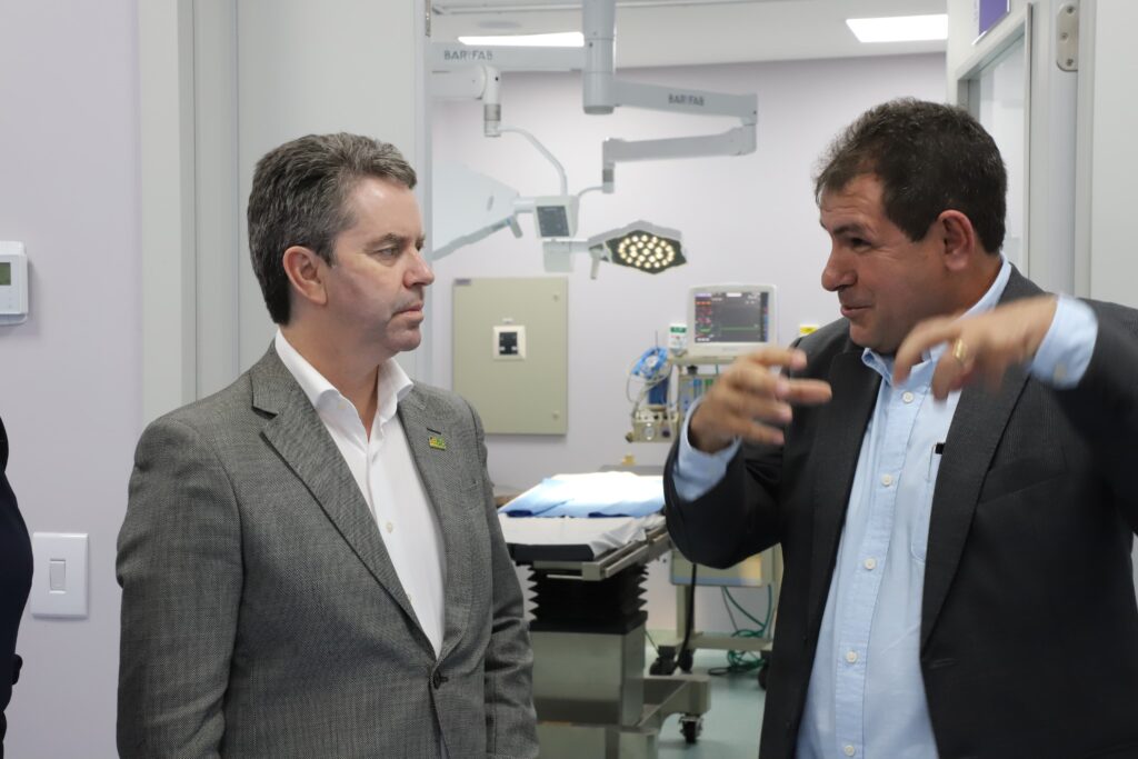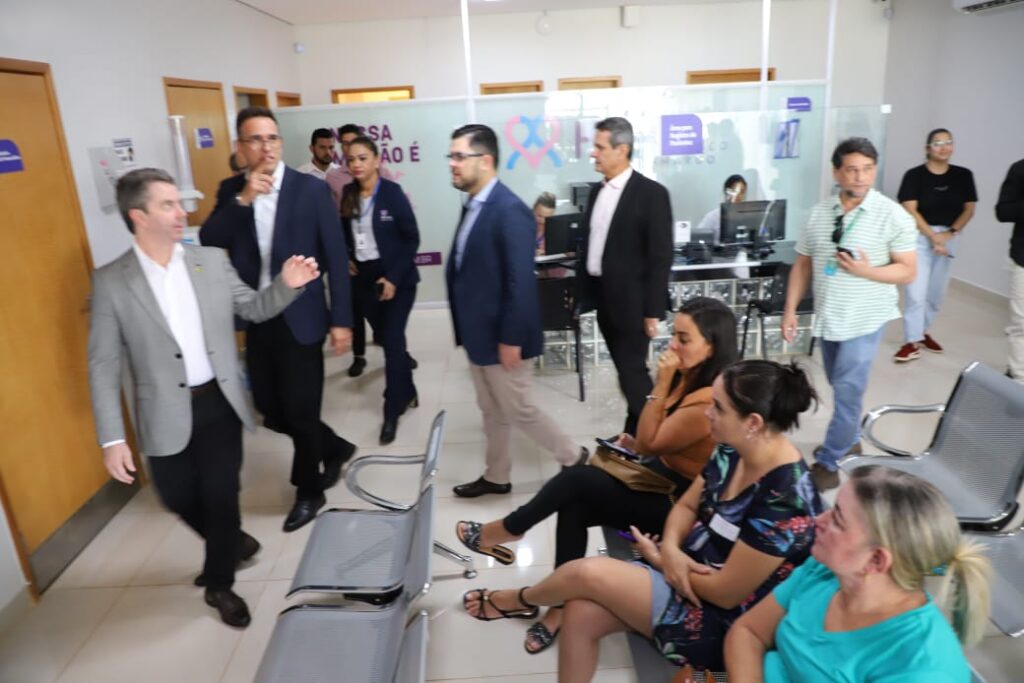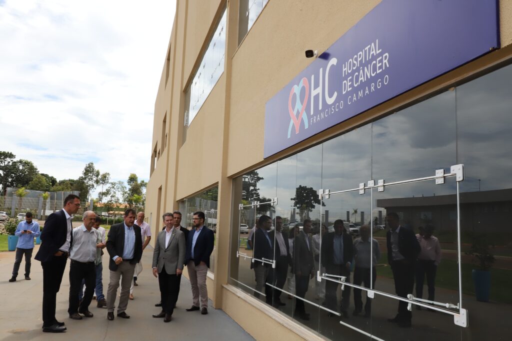 O secretário Rasível Santos e o secretário-adjunto, Sérgio Vencio, acompanhado de personalidades políticas, fizeram uma visita técnica ao Hospital de Câncer Francisco Camargo, em InhumasA equipe percorreu as principais alas do hospital, entre elas o ambulatório, o centro cirúrgico e a sala para examesOs gestores e as autoridades iniciaram as discussões para que a instituição filantrópica possa também oferecer atendimento custeados pelo Sistema Único de SaúdeRasível Santos observou durante a visita que os pacientes são atendidos com segurança e que o hospital pode crescer avançar muito no EstadoAutoridades observam a fachada do Hospital de Câncer Francisco Camargo, que presta serviço à população há cerca de três anosRasível Santos e Wagner Miranda conversam sobre a possibilidade de o hospital tornar-se uma unidade de referência em oncologia na região