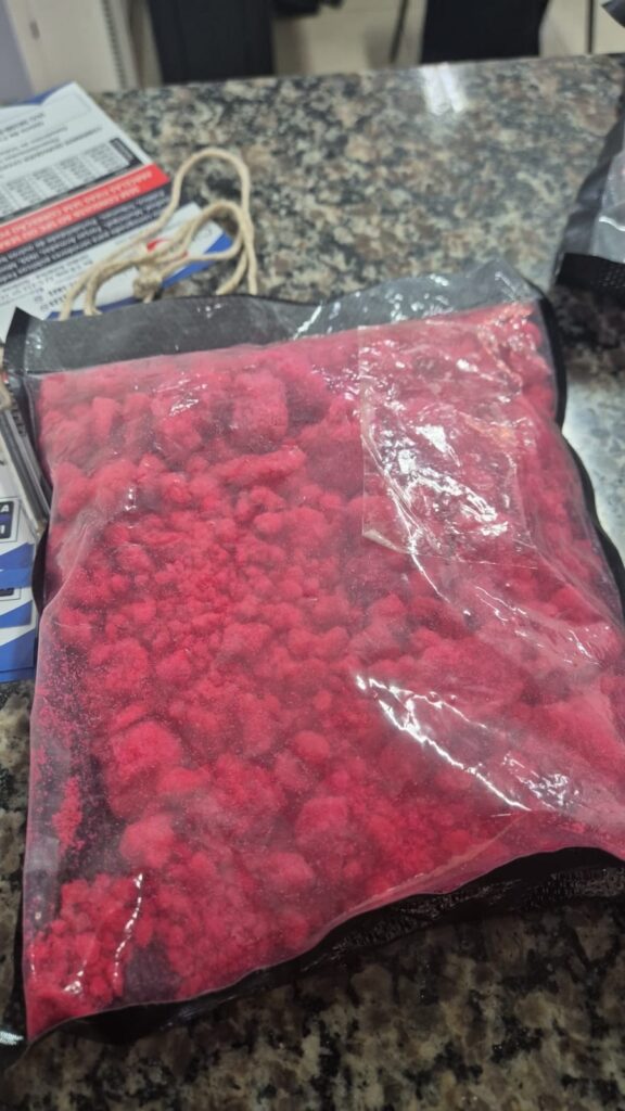 Durante a abordagem ao veículo, realizada pelas equipes no trajeto, os policiais localizaram uma mala contendo grande quantidade de drogas sintéticas. Ao todo, foram apreendidos aproximadamente 3 mil comprimidos de ecstasy e 505 gramas de MDMA (princípio ativo do ecstasy).
