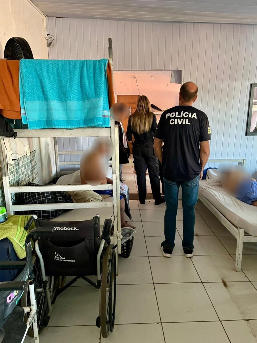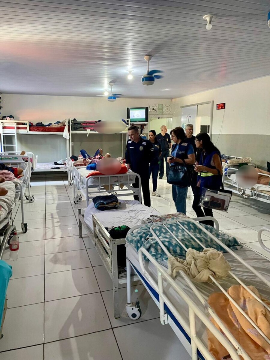 Durante a inspeção, constatou-se condições insalubres e incompatíveis com o acolhimento de pessoas idosas, determinando a interdição imediata da instituição, além da lavratura das notificações administrativas
