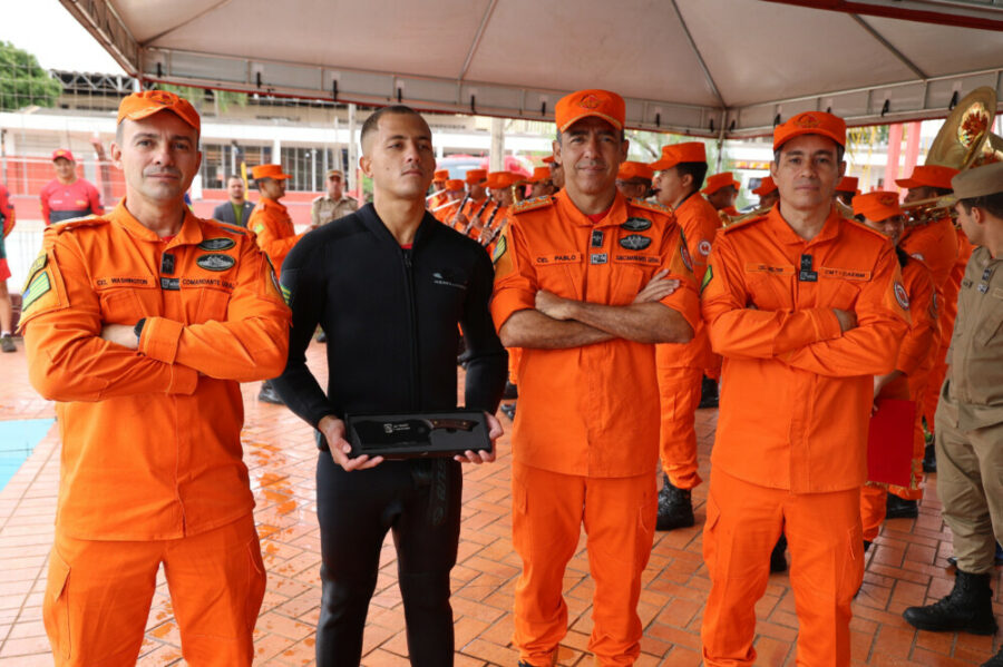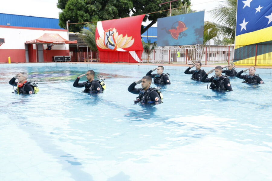 O Corpo de Bombeiros Militar do Estado de Goiás (CBMGO) realizou, na manhã desta terça-feira (21/10), no Batalhão de Operações, Proteção Ambiental e Resposta a Desastres (BOPAR), a solenidade de formatura da 26ª edição do Curso de Especialização em Mergulho Autônomo (CMAUT). Presidida pelo Comandante-Geral, Coronel Washington Luiz Vaz Junior, a cerimônia marcou a conclusão de sete novos mergulhadores de segurança pública, que cumpriram 350 horas de instruções intensas em técnicas de mergulho, operações subaquáticas, segurança náutica e resgate.
