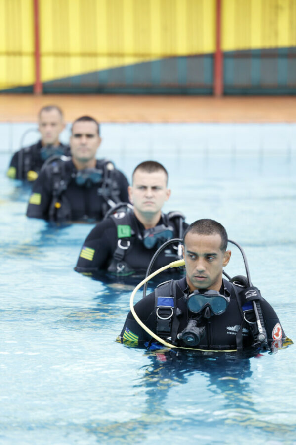Sete novos mergulhadores de segurança pública cumpriram 350 horas de instruções intensas em técnicas de mergulho, operações subaquáticas, segurança náutica e resgate