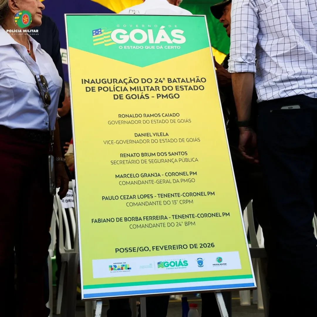 O governador Ronaldo Caiado inaugurou, na manhã desta terça-feira (24/2), a nova sede do 24º Batalhão da Polícia Militar de Goiás (PMGO), em Posse, no Nordeste goiano. O Estado investiu R$ 2,1 milhões no espaço, que está em funcionamento desde o final do ano de 2025. Localizado no setor Augusto José Valente I, o prédio oferece melhores condições operacionais e administrativas para a corporação, com ambientes funcionais e modernos, o que deve representar impacto positivo no atendimento à população.