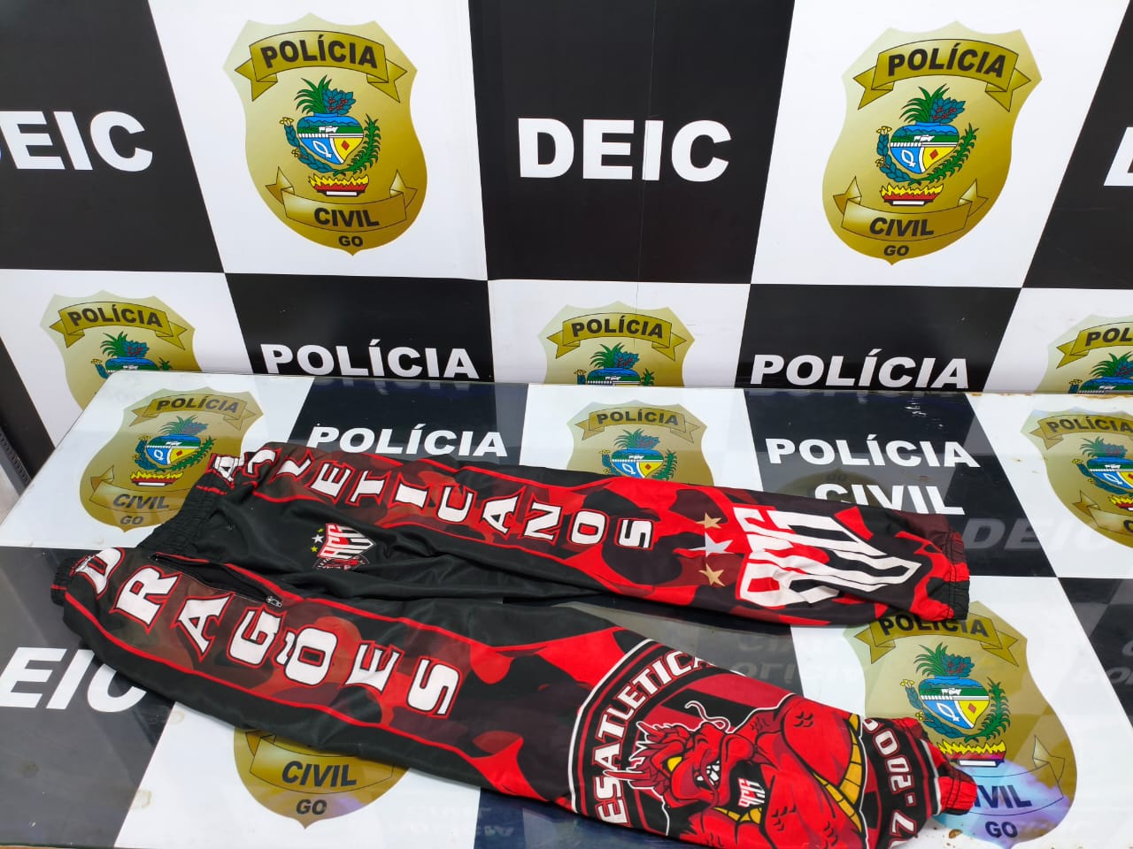 Na ocasião, o líder e o adolescente abordaram a vítima enquanto transitava, na companhia de seu filho menor, de apenas 3 anos, e passaram a exigir que ela retirasse as vestimentas alusivas ao Atlético Goianiense. Em seguida, agrediram a vítima com socos e outros golpes físicos, causando-lhe lesões corporais, além de subtrair sua calça, um par de tênis, uma carteira contendo R$ 90 e documentos pessoais, dentre os quais a carteira de associado do referido clube esportivo. Na operação, foi preso o investigado, líder do grupo criminoso, bem como apreendidas as vestimentas subtraídas da vítima.