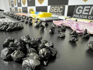 A Polícia Civil de Goiás, por meio do Grupo Especial de Investigação Criminal (Geic) de Luziânia – 5ª DRP, deflagrou operação nesta quinta-feira (18) em Valparaíso de Goiás. A ação resultou no cumprimento de dois mandados de busca e apreensão e na prisão em flagrante de dois homens por tráfico de drogas. Após monitoramento estratégico, as equipes identificaram um esquema que utilizava uma distribuidora de bebidas às margens da BR-040, no bairro Marajó, como fachada para a venda intensa de cocaína.