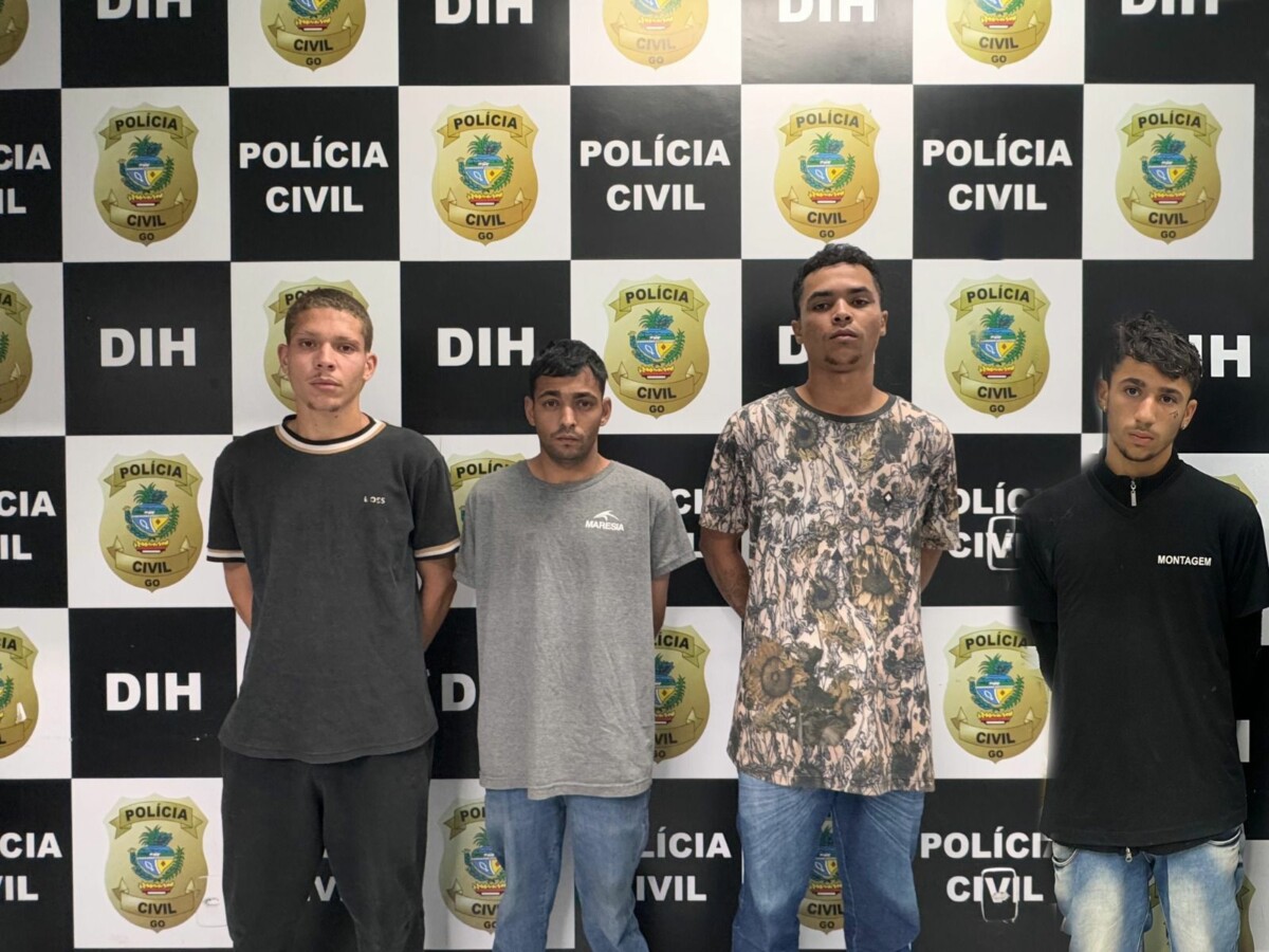 A Polícia Civil de Goiás, por meio da Delegacia Estadual de Investigação de Homicídios (DIH/PCGO), prendeu temporariamente, na última sexta-feira (1º), em Goiânia, Danilo Pereira de Póvoa, Felype Reis de Brito, Lucas Gabriel Alves da Silva Jubé e de Julyo César Rodrigues Bonfim, investigados pelo homicídio de um jovem de 17 anos. O crime foi praticado no dia 9 de março de 2025, por volta das 21h, em área de mata de difícil acesso, situada no setor Jardins do Cerrado 10, em Goiânia.