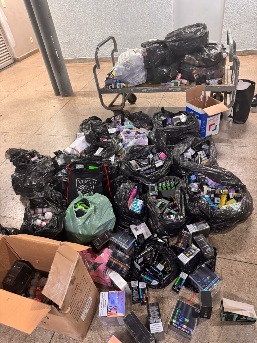 No local, foram apreendidas cerca de 400 unidades de cigarros eletrônicos, avaliadas em aproximadamente R$ 100 mil em mercadorias. Três integrantes do grupo foram presos em flagrante, enquanto um dos sócios permanece foragido.