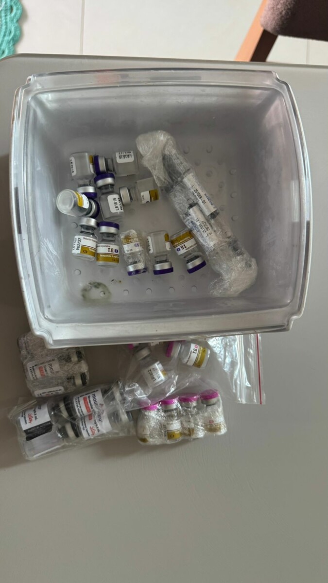 Na segunda-feira (17), a equipe identificou um novo ponto de revenda no Setor Itaguaí II. No local, foram apreendidos diversos frascos e canetas emagrecedoras armazenados de forma inadequada na geladeira, misturados a alimentos, além de seringas contendo substâncias não identificadas.