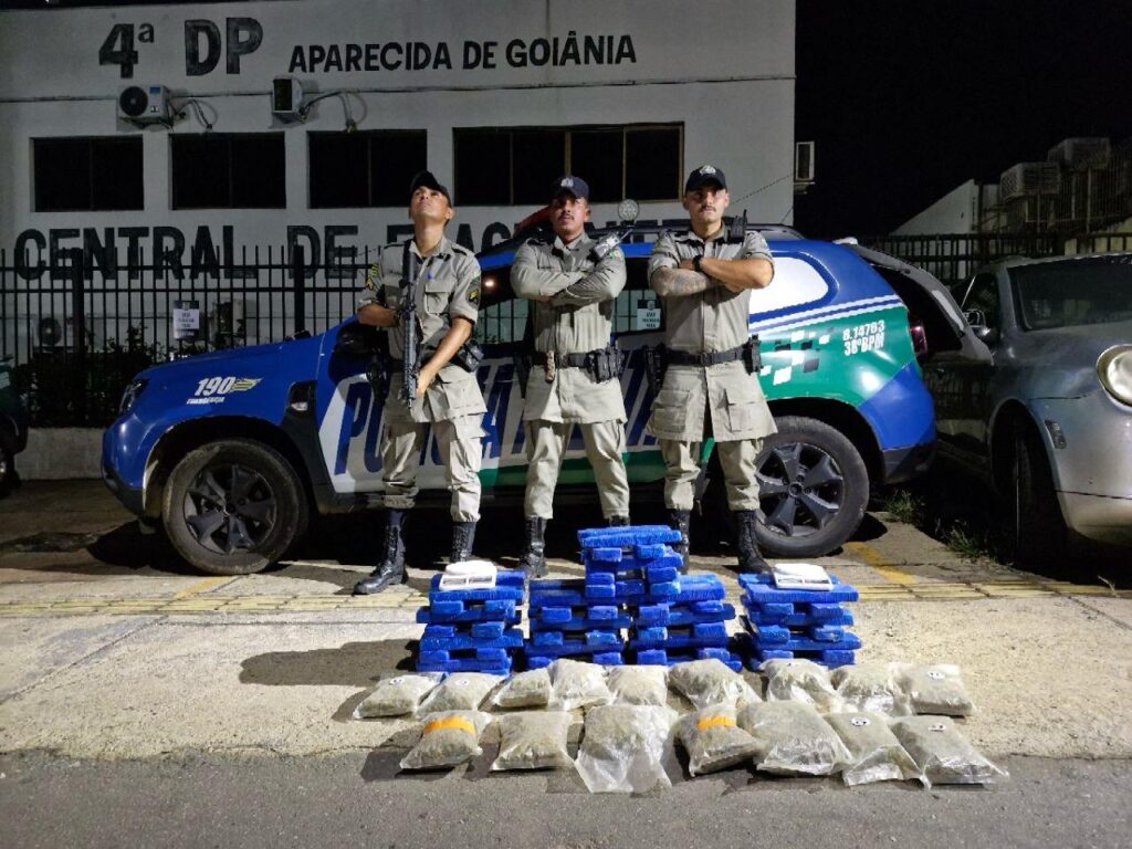 Ainda em Goiânia, a PMGO prendeu dois homens que estavam utilizando um veículo de aplicativo para transportar drogas. Após receberem informações sobre o caso, os policiais visualizaram o veículo e realizaram a abordagem. No interior do carro, foram encontradas 30 peças de maconha. O motorista relatou que entregaria a droga em Anápolis. Em diligências subsequentes, mais 38 peças de maconha e 16 buchas de super maconha foram apreendidas. O responsável por essas drogas foi detido em outro endereço. Todos os indivíduos e os entorpecentes foram apresentados na Central Geral de Flagrantes para as devidas providências.