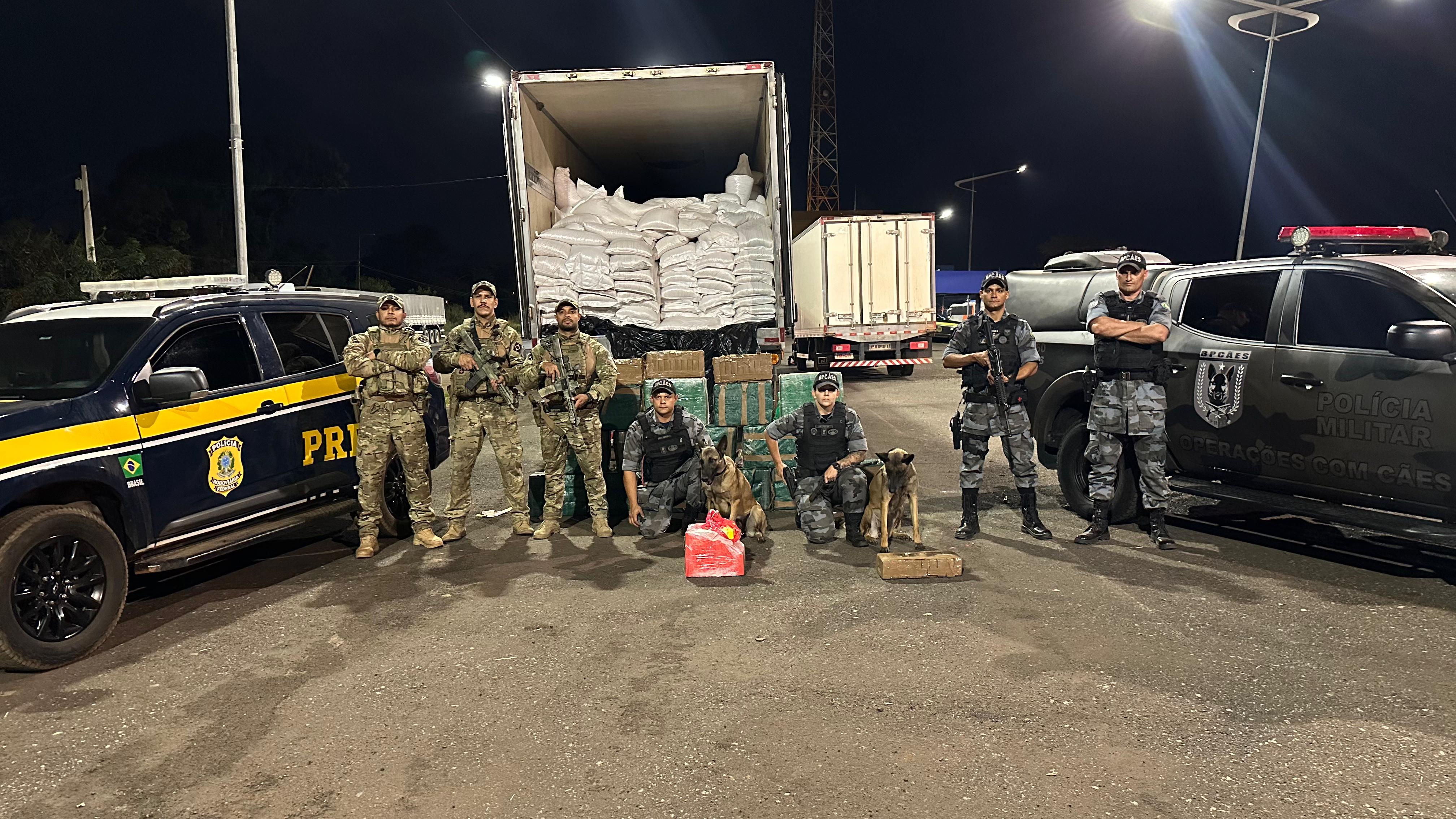 PMGO e PRF apreendem mais de meia tonelada de cocaína em carga escondida sob milho de pipoca