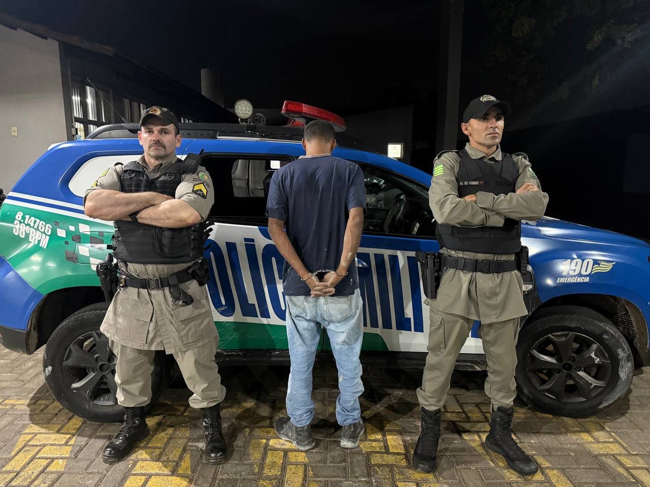 A Polícia Militar de Goiás, por meio da equipe do 38° Batalhão de Polícia Militar do Comando de Policiamento da Capital (38° BPM-CPC), prendeu um homem após um furto a supermercado, no setor Campinas, em Goiânia. Segundo a corporação, os militares foram acionados por um policial veterano, que passava pelo local e flagrou o suspeito subtraindo produtos do estabelecimento e tentou detê-lo. O indivíduo desobedeceu à ordem de parada e fugiu pelas ruas do setor, sendo alcançado na rua Jaraguá. Durante a tentativa de abordagem, o suspeito reagiu com violência, lançando uma pedra e agredindo o policial com um pedaço de madeira. Diante da ameaça iminente, o militar efetuou um disparo, atingindo a perna do agressor, o que cessou a agressão. O Corpo de Bombeiros foi acionado e prestou os primeiros socorros. O homem foi encaminhado inicialmente ao CAIS, onde foi identificado um projétil alojado, sendo posteriormente transferido para o Hospital de Urgências de Goiânia (HUGO), onde passou por cirurgia. Segundo a funcionária do supermercado, o crime foi confirmado no local. O suspeito, que possui vasta ficha criminal, alegou ter praticado o furto para pagar uma dívida de drogas. Ele foi autuado em flagrante por roubo impróprio (Art. 157 do Código Penal) e permanece custodiado sob escolta da Polícia Penal no hospital.