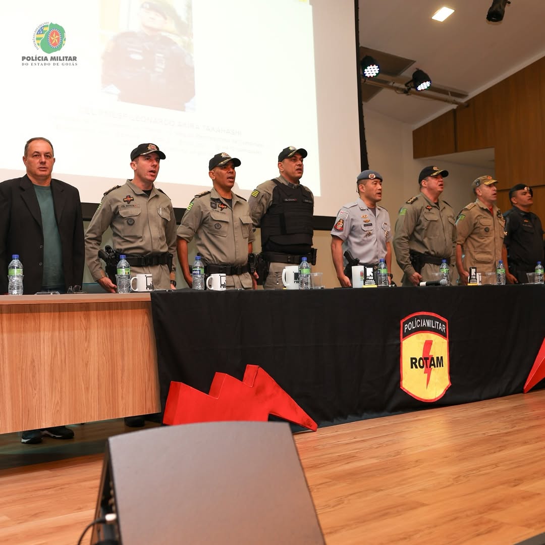 A Polícia Militar do Estado de Goiás realizou nesta segunda-feira (07/07), a aula inaugural do 22º Curso Operacional de ROTAM. Visando a especialização da tropa, o palestrante desta aula inaugural foi o coronel da polícia militar do estado de São Paulo, Leonardo Akira Takahashi. O evento de apresentação do curso para os alunos contou também com a presença de autoridades de outras forças de segurança.