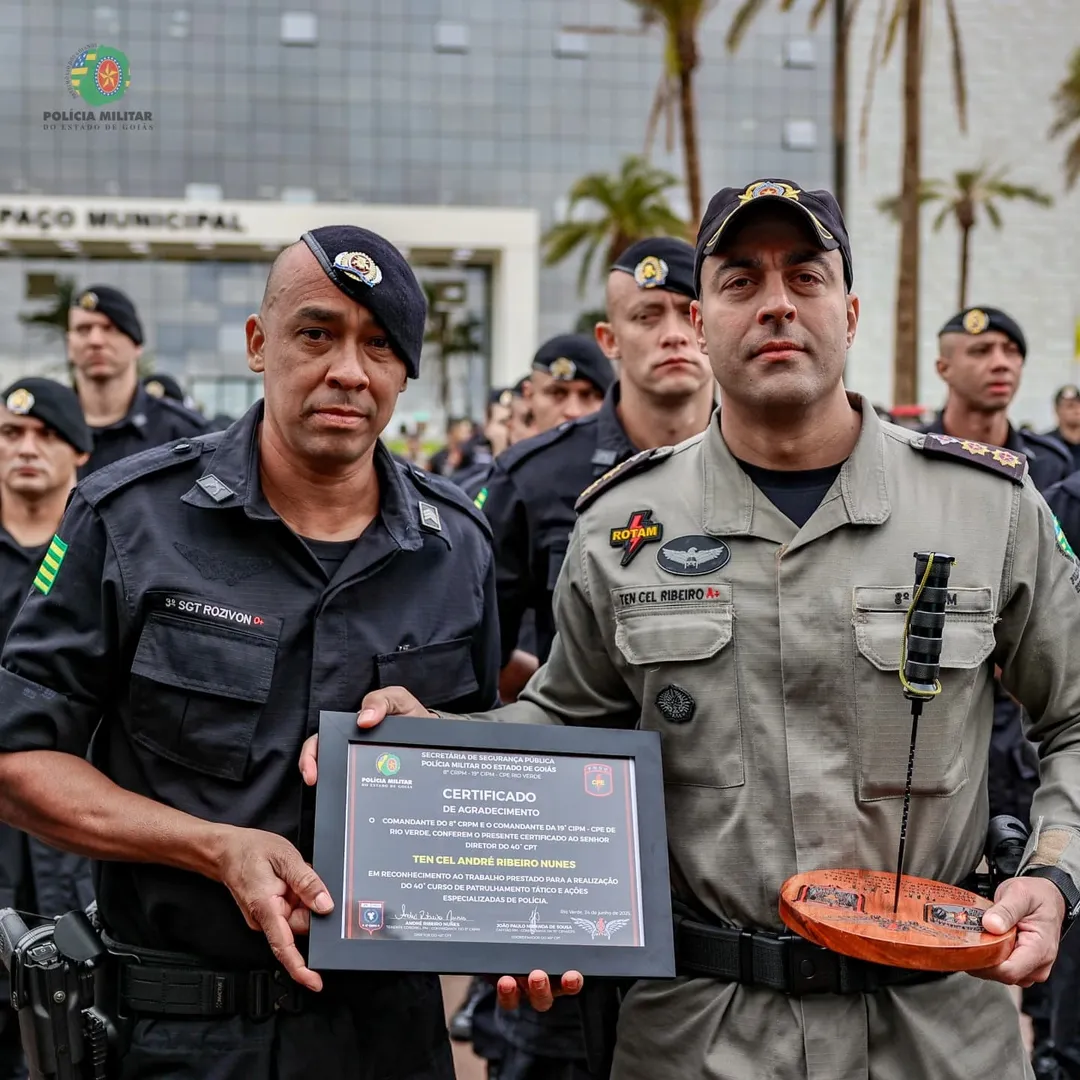 A Polícia Militar de Goiás realizou, na manhã desta terça-feira (24/06), na cidade de Rio Verde, a solenidade de formatura do 40° Curso de Patrulhamento Tático e Ações Especializadas – Turma Tenente-Coronel André Ribeiro Nunes, Comandante do 8° CRPM, que emprestou o nome aos formandos.