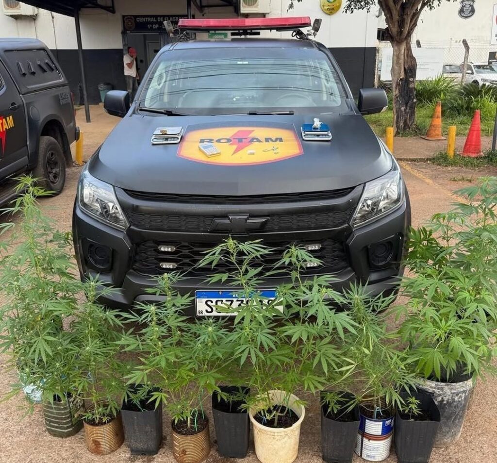 Em Goiânia, uma equipe da Rotam, após compartilhar informações com o serviço de inteligência ROTAM/20, prendeu um homem que cultivava maconha em sua residência. Durante a ocorrência, foram apreendidos 14 pés de maconha, duas porções de maconha, duas balanças de precisão e uma máquina de cartão.