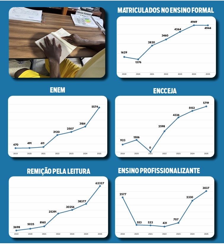 Foi o oitavo ano seguido em que a PPGO conseguiu elevar o número de apenados no Encceja PPL. De 2017 a 2025, o crescimento foi de 957%.