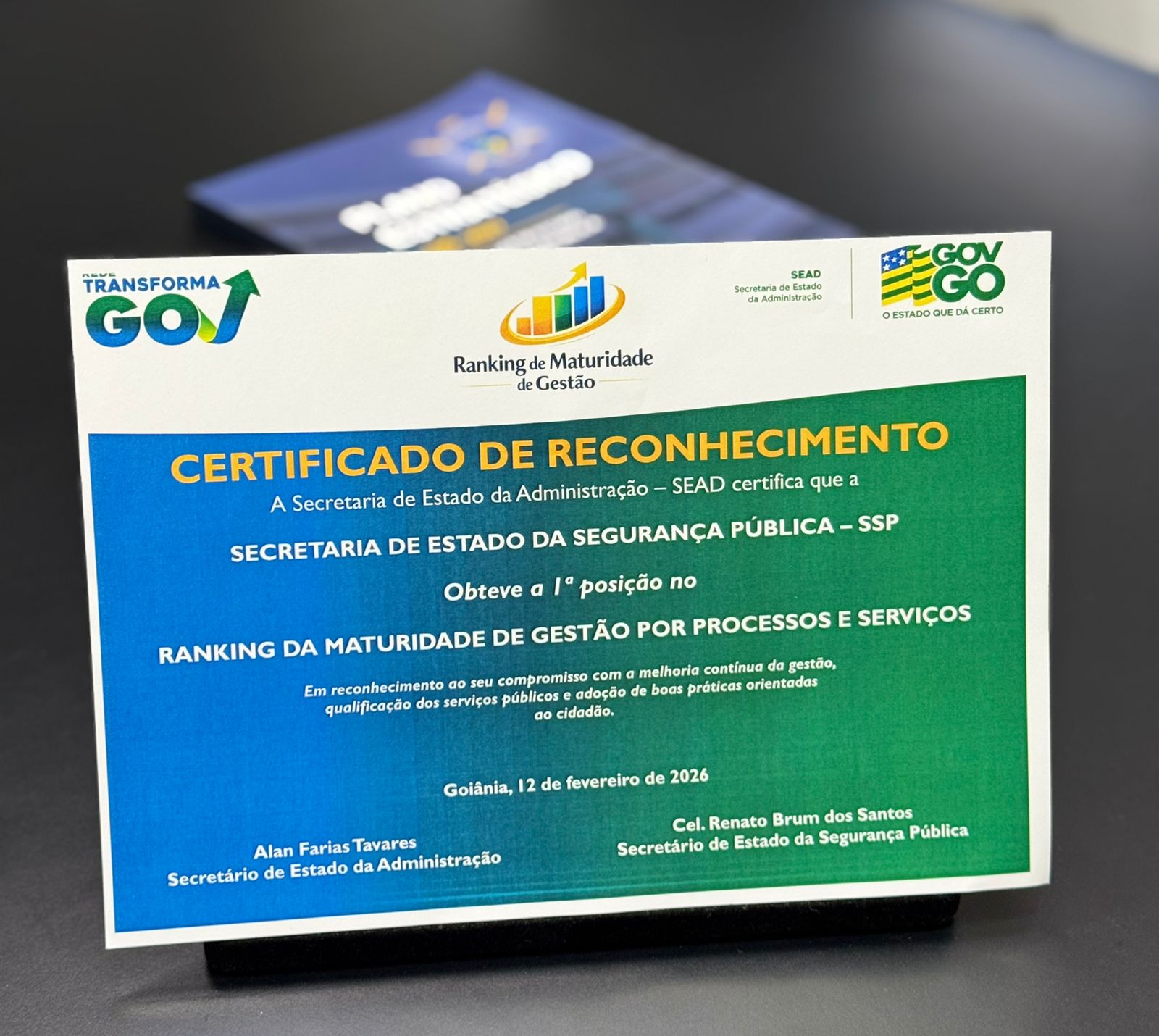 A Secretaria de Estado da Segurança Pública (SSP-GO) alcançou o 1º Lugar Geral entre 38 órgãos estaduais no Ranking de Maturidade da Gestão de Processos e Serviços, promovido pela Secretaria de Estado da Administração (SEAD).