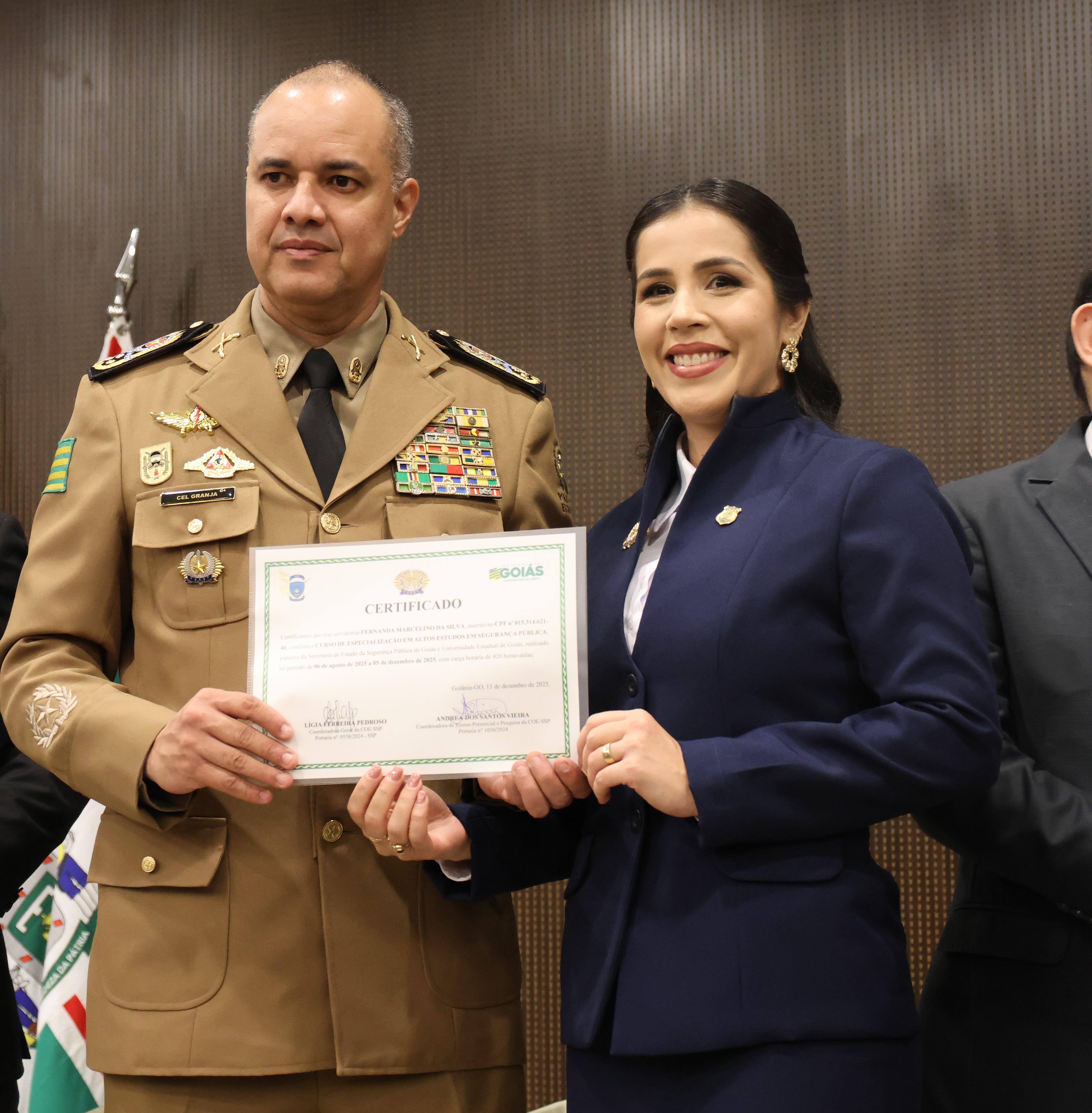 A Secretaria de Estado da Segurança Pública (SSP-GO), por meio da Coordenadoria de Ensino, em parceria com a Universidade Estadual de Goiás (UEG), promoveu nesta quinta-feira (11/12), a formatura do CAESP 2025, o Curso de Especialização em Altos Estudos em Segurança Pública – Turma Policial Penal Thiago Gomes Paré (in memoriam). Equivalente ao Curso Superior de Polícia e Bombeiro Militar, o CAESP tem por finalidade aperfeiçoar profissionais para a gestão de comando, direção e Estado-Maior, fortalecendo a atuação estratégica das forças de segurança.