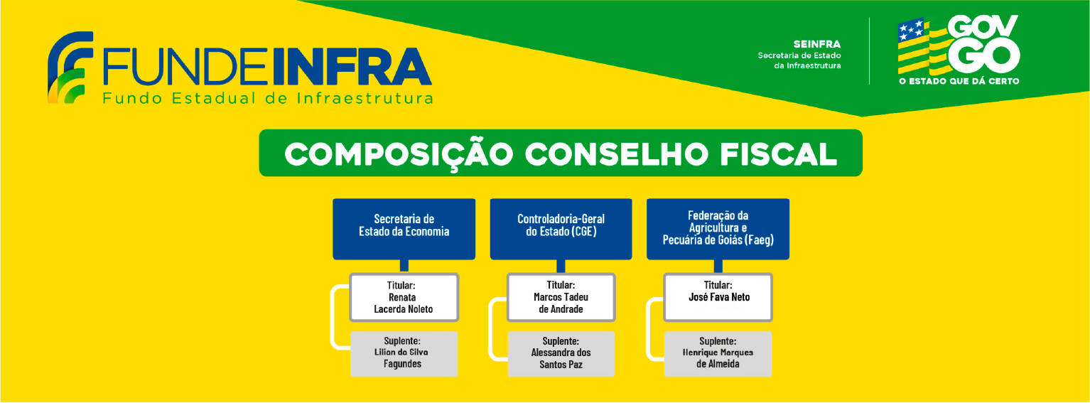 O Conselho Fiscal do Fundo Estadual de Infraestrutura (Fundeinfra) será composto conforme artigo 3º, do Decreto Estadual nº 10.241, de 24 de março de 2023: