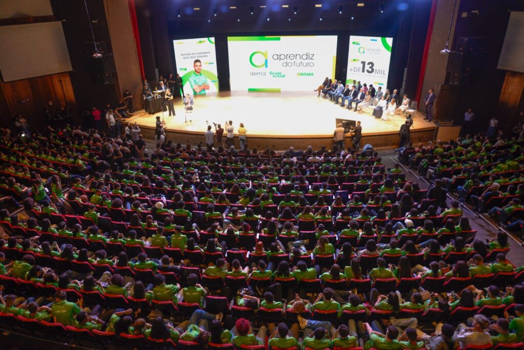 O governador Ronaldo Caiado anunciou, nesta quinta-feira (8/5), a ampliação do programa Aprendiz do Futuro, de 6.250 para 10 mil vagas, durante a apresentação dos 561 novos contratados pela iniciativa. Eles foram recepcionados também pela coordenadora do Goiás Social, a primeira-dama Gracinha Caiado, em cerimônia no Teatro Rio Vermelho. Outra novidade apresentada foi a parceria com a Prefeitura de Goiânia para incluir os aprendizes na administração municipal.