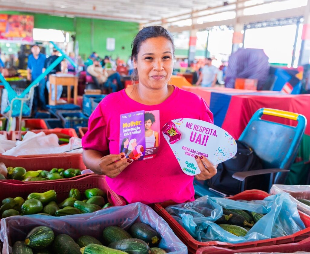 Durante a mobilização, foram distribuídos panfletos com informações sobre os diferentes tipos de violência contra a mulher, além de orientações sobre o programa Goiás Por Elas e a campanha “Me Respeita, Uai”. O Ônibus Lilás, unidade móvel da Seds especializada no acolhimento de mulheres em situação de violência, esteve presente ao longo do dia, oferecendo suporte e orientações com uma equipe multiprofissional.