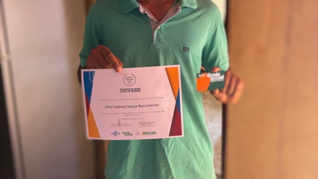 A Secretaria de Estado de Desenvolvimento Social (Seds), entregou um cartão do Crédito Social para o Vitor Gabriel Souza, que é integrante da comunidade quilombola de Goianinha, em Palmeiras de Goiás, e que acaba de receber R$ 2.692,90 como apoio financeiro do Goiás Social para começar o seu empreendimento. O incentivo servirá para que ele possa comprar equipamentos e insumos para a prática da avicultura, que foi o curso escolhido por ele.